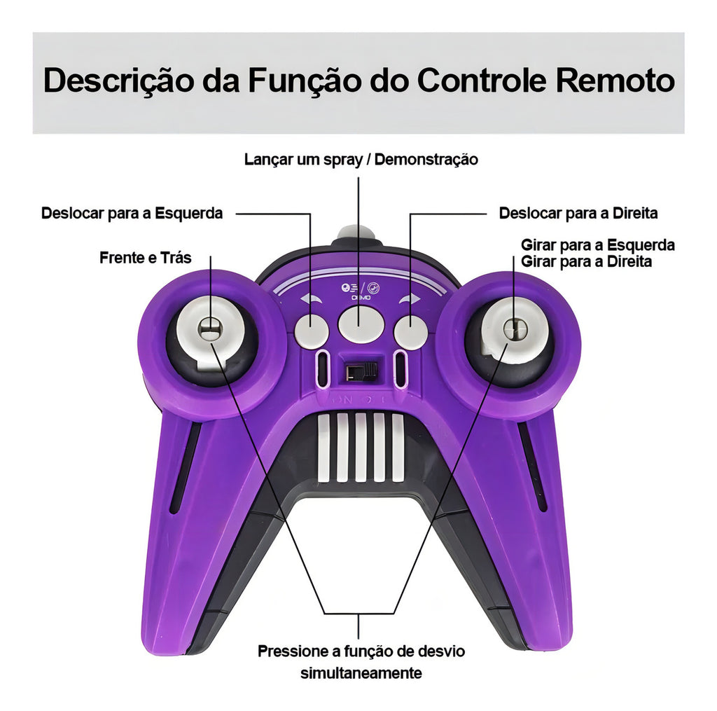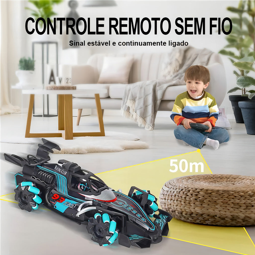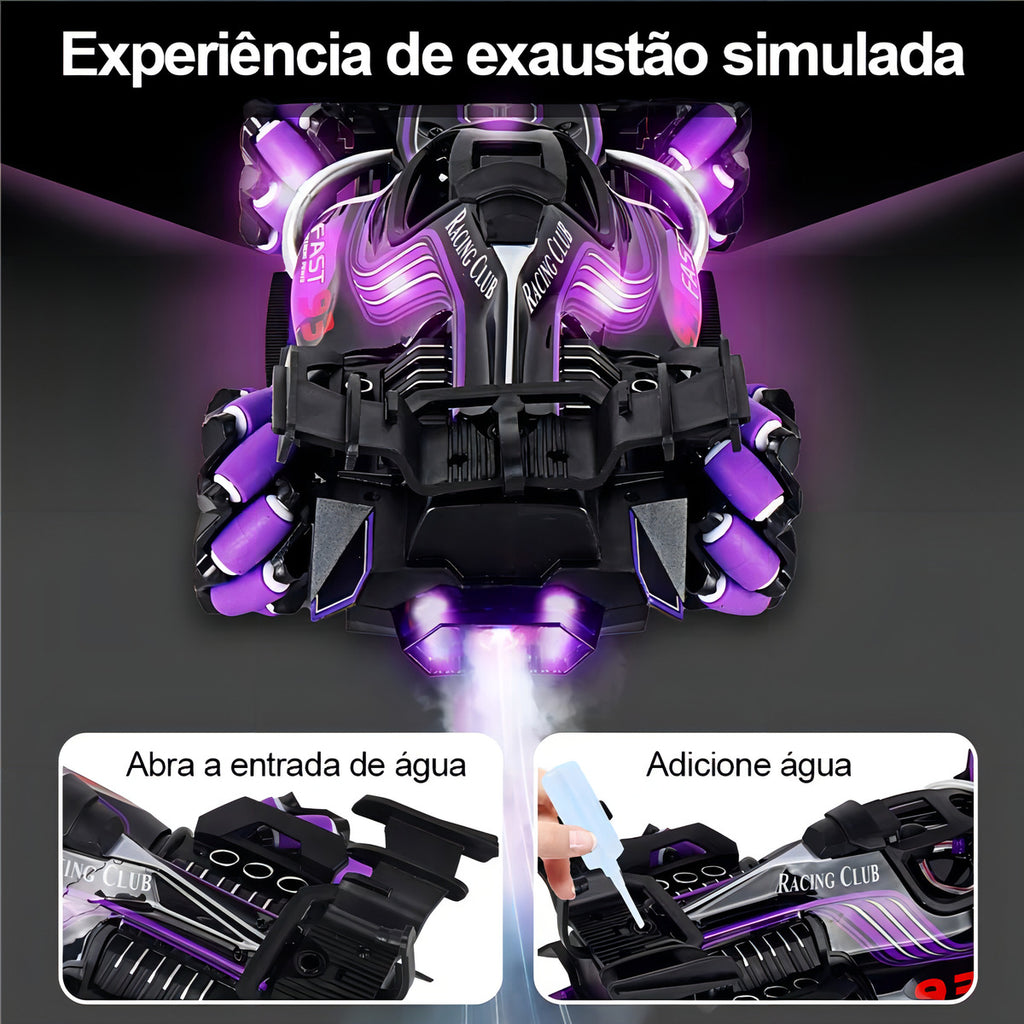 Com tração nas quatro rodas, luzes LED, efeito de spray e rotação 360°, oferece uma experiência dinâmica, segura e cheia de ação.