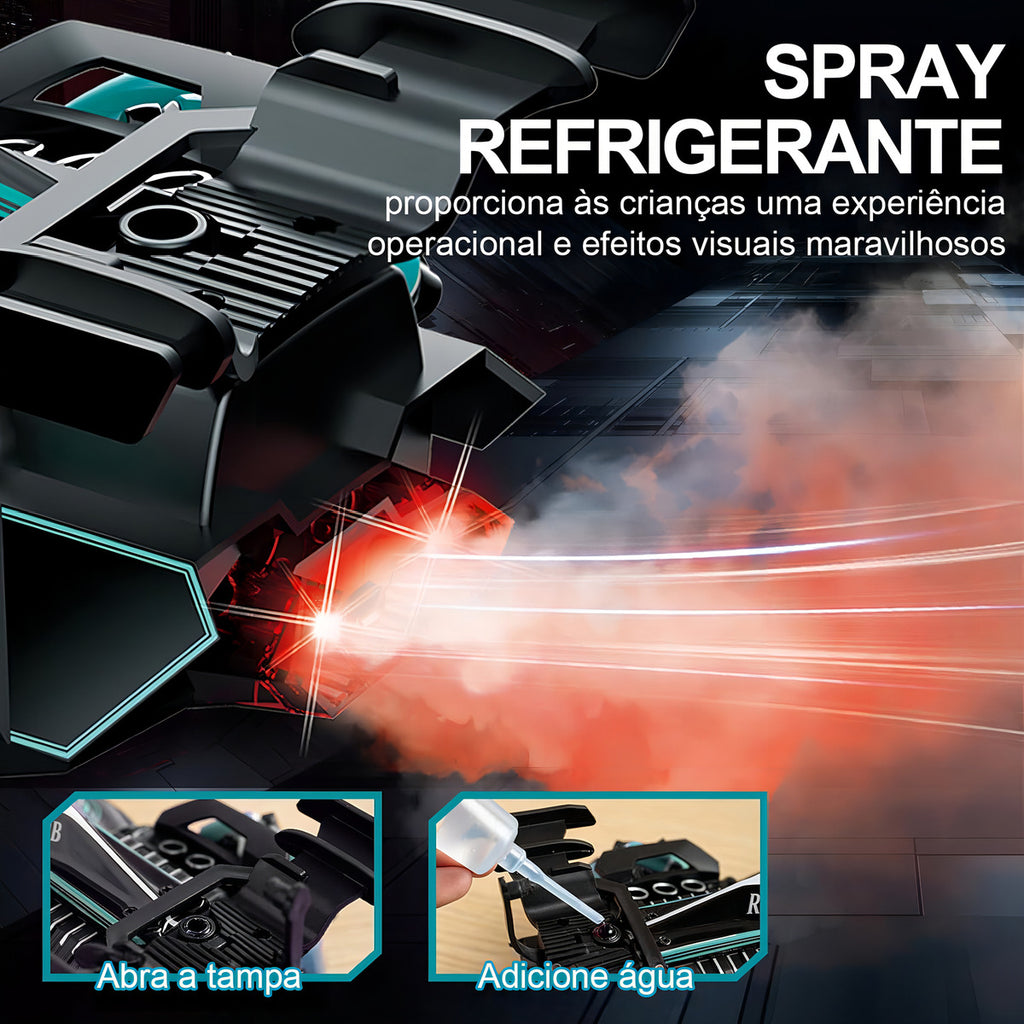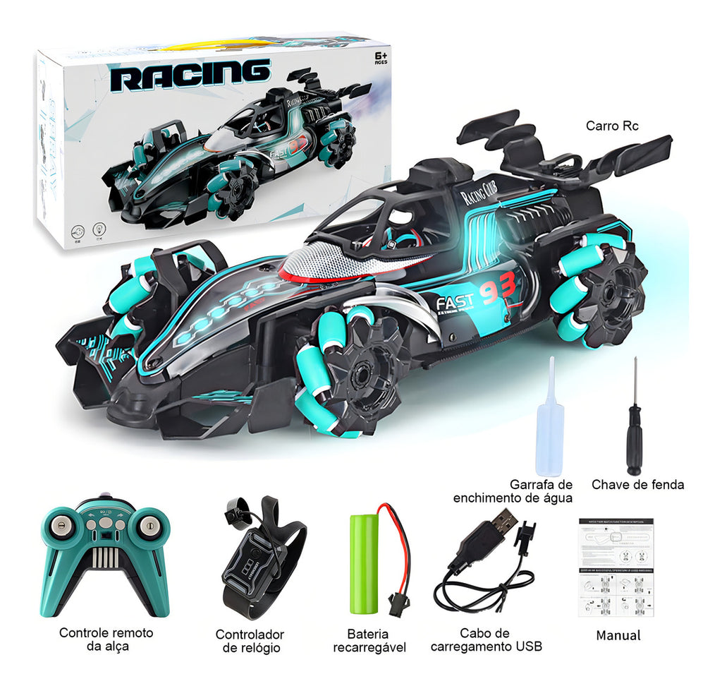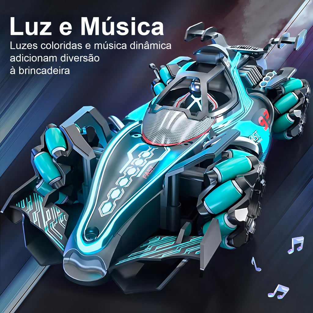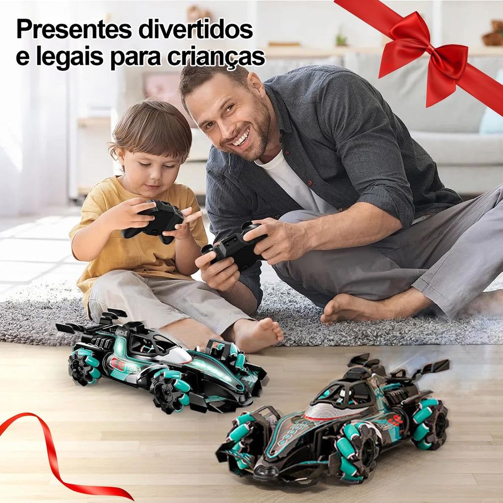 Com tração nas quatro rodas, luzes LED, efeito de spray e rotação 360°, oferece uma experiência dinâmica, segura e cheia de ação.
